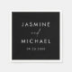 Fügen Sie Ihrer Hochzeitsfeier, Ihrer Verlobungsfeier oder dem Probe-Dinner eine personalisierte Touch mit diesen personalisierten, modernen Hochzeitsnapkins. Die eigenen Hochzeitsnapkins zeigen Ihre Namen und das Hochzeitsdatum in modernen Schriften mit einem weißen handgeschriebenen Drehbuch auf schwarzem Hintergrund. Die einfachen, aber stilvollen, schwarz-weißen Servietten sind perfekt für Ihre Hochzeit.