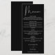 Dieses elegante Schwarz-Weiß-Hochzeitsmenü kann mit Ihren Informationen in der schicken Typografie personalisiert werden. Entwickelt von Thisisnotme©