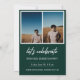 Modernes White Script "Graduate" Overlay, Ankündigung und Einladung von Foto Abschluss der Senior Class. Vorlagenzeilen für den Namen des Absolventen, die Klasse des Jahres und die Schule. Auf der Rückseite der Karte befinden sich 2 zusätzliche Fotos mit Textzeilen für die Details Ihres offenen Hauses/Graduiertenpartys auf grünem Hintergrund.
