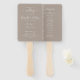 Dieses moderne Hochzeitsprogramm-Fan verfügt über weiße Skripte und sans Serif-Text auf einem taupe Hintergrund.
