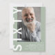 Moderne 60. Geburtstagseinladung - Design mit einem schlauen grünen Hintergrund, der in jede Farbe verändert werden kann, einem Porträtfoto, dem Text "SIXTY" in fett weißem Schriftart und einer eleganten Geburtstagsvorlage, die leicht personalisiert werden kann. Stilvoll, trendig und perfekt für jedes Alter!