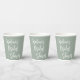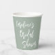 Personalisiertes, modernes Script Calligraphy Letting Brautparty Paper Cups in Dusty Sage Green