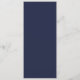 Moderne Script Nautical Navy Blue Wedding Menu Karte mit dem Titel in weißem, modernem Script-Schriftart mit Hochzeitsmenüdetails in weißen modernen Sans serif Schriftart auf marineblau Hintergrund.