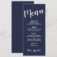 Modernes Skript Nautical Navy Blue Wedding Menu Menükarte