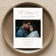 Erleben Sie das Wesen Ihrer Liebe mit unserem modernen Script Rustic Elegance Wedding Einladung. Diese doppelseitige Karte eignet sich ideal für eine Hochzeit am Meer oder am Strand. Sie besticht durch ein atemberaubendes Foto eines Paares, das sich bei Sonnenuntergang umarmt und die zeitlose Eleganz einer Baderomane verkörpert. Handgeschriebene Kalligraphie in Schwarz und Weiß fügt diesem trendigen, schicken Design eine Touch modernen Minimalismus hinzu. Ideal für informelle und stilvolle Hochzeiten im Sommer, verbindet diese Einladung zeitgenössische und klassische Elemente und ist somit die perfekte Wahl für eine traumhafte Feier an der Küste.