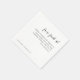 Mit diesen coolen Servietten, mit modernem Drehbuch und individuellem Text machen Sie Ihre Hochzeitstisch-Dekoration zum Spaß. Fügen Sie einfach Ihre eigenen Daten hinzu, indem Sie die Option "Personalisieren" verwenden.