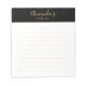 Zur Arbeit List Notepad verfügt über individuelle Name im modernen, goldfarbenen Skript-Schriftart-Stil mit benutzerdefiniertem Text in modernen Sans Serif Schriftart Stil, auf schwarz mit goldenem Streifen Oberkante, auf weißem Hintergrund. Bitte beachten Sie: Die Details der Folie werden im Kunstwerk simuliert. Bei der Herstellung dieses Produktes wird keine Folie verwendet.