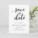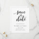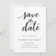 Diese elegante Schwarz-Weiß-Hochzeitskarte rette-the-date und eignet sich ideal für eine moderne Hochzeit. Das schlichte Design zeichnet sich durch elegante schwarze Kalligraphie auf einem sauberen, weißen Hintergrund aus. Die Karte enthält auch einen QR-Code für die Hochzeitswebsite auf der Rückseite.