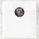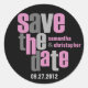 Ein Save the Date Aufkleber für die Paare, die keine Angst haben, anders zu sein. Der rosafarbene Sans Serif in Rosa und die Grautöne heben sich vor dem schwarzen Hintergrund auf diesem sauberen, aber wirksamen Aufkleber hervor. Geben Sie Ihren Namen und das Veranstaltungsdatum ein. Ideal für Umschlag oder Siegel oder für den Einsatz in Günstige-Taschen. Erhältlich in alternativen Farben mit passenden Produkten.
