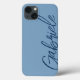 Dieses iPhone Gehäuse zeichnet sich durch einen blauen Hintergrund mit einem modernen, marineblauen Skript aus. Personalisieren Sie es mit Ihrem Namen oder Initialen, einem modernen stilvollen Handy-Gehäuse.