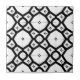 Diese Keramik-Kachel zeichnet sich durch ein auffälliges geometrisches Design aus, das zeitlos und modern zugleich ist. Das komplizierte Muster besteht aus schwarzen Linien, die Diamantformen formen, wobei jeder einen kleineren weißen Diamanten mit vier winzigen Dreiecken an seinen Ecken umschließt. Die sorgfältige Anordnung dieser Elemente schafft eine optische Täuschung von Tiefe und Bewegung, die die Kachel nicht nur zu einem funktionalen Element macht, sondern zu einem Kunstwerk, das jedem Raum Charakter und Raffinesse verleiht. Der Schwarz-Weiß-Kontrast verstärkt diesen Effekt weiter, indem er die Mustertiefe und Dynamik verleiht. Der Stil ist modern, hat aber aufgrund seines monochromen Farbschemas und der symmetrischen Gestaltung einen zeitlosen Anklang. Diese Kachel würde eine bemerkenswerte Ergänzung zu jedem Innenarchitekturprojekt darstellen und eine Touch von Eleganz und Intrige hinzufügen.