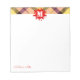 Modernes Tartan Red Splash Custom Script Monogram Notepad Elegantes, stilvolles und modisches anpassbares Notizblock mit "personalisierten Monogramm" auf rotem Splash, gelb rosa kariertes Tartan oben und "personalisierte Namensnotizen" am unteren Rand. Dieses schöne Notizblock kann als wunderbares Geschenk durch Hinzufügen von Namen oder Text / Änderung von Schriftart, Farbe, Größe und Position.