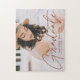 Feiern Sie den Abschluss mit einem maßgeschneiderten Foto Abschluss Rätsel! Das Rätsel zeigt das horizontale Foto des Absolventen mit "Graduate" in einem terracotta braunen modernen Skriptüberlagerungen. Personalisieren Sie das Design, indem Sie den Namen des Absolventen, den Namen der Schule und das Abschluss Jahr.