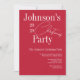 Dies ist ein modernes, stilvolles Design, Weihnachten Party Einladung. Es ist in festlichem Rot und Weiß mit einem modernen Typografie Skript-Design. Es hat die Botschaft "Johnsons Weihnachtsfest" und Platz für Sie, um Ihren Namen und das Jahr der Feier hinzuzufügen. Darunter haben Sie Platz, um die Details Ihres Party, einschließlich Ort, Zeit und UAWG-Informationen, hinzuzufügen. Auf der Rückseite wird das Hauptmotiv der Typografie mit der Meldung "Let's Celebrate!" wiederholt. Um zu personalisieren, fügen Sie einfach Ihren Namen und Party-Informationen, mit der Personalisierung dieser Schaltfläche, hier können Sie auch die Erholung des Textes ändern, wenn Sie gewollt. Karo aus dem Entwurfsbearbeitungsprogramm, um die Farbe oder den Schriftart zu ändern. Wenn Sie Hilfe bei Personalisierung, passenden Produkten oder für ein individuelles Design benötigen, kontaktieren Sie mich per zazzle Chat oder per E-Mail: ursuladawnmoon@gmail.com Frohe Weihnachten!