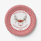 Modernes Weihnachtsgebäck Personalisierte Rentier Candy Cane gestreifte Party-Teller mit Rot und Weiß Streifen und ein niedlicher Rentier mit Blumenkronen und Ornamenten. Der Familienname und das Datum können auf diesen individuellen Weihnachts-Party Paper-Tellern aktualisiert werden. Bitte kontaktieren Sie den Designer, um weitere passende Artikel zu erhalten.