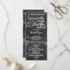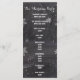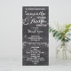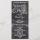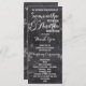 Modernes Winterschneeflocken-Hochzeitsprogramm mit stilvollem, elegantem und originellem schwarzen Chalkboard mit weißem Schneeflocken-Hintergrund. Ein elegantes Schwarz-Weiß-Hochzeitsthema, das sich perfekt für das Winterwunderland eignet, Weihnachts-Hochzeitsthema.Der Text ist vollständig anpassbar