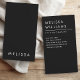 Schwarze, vertikale Visitenkarten mit Ihrem Namen auf der Vorderseite und Namen, Titel und Kontaktinformationen auf der Rückseite.