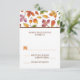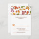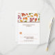 Cartes RSVP automne chic et colorées avec vos données de date RSVP personnalisées imprimées en orange et marron sur blanc avec un arrière - plan automne de feuilles changeant les couleurs en vert, orange, violet et jaune sur le dessus. Personnalisez ces cartes RSVP pour vos mariages de automne pendant les mois d'automne.