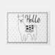 Schwarzweiss-Lamafußmatte in einer flüchtigen Art mit schwarzem Mikropunktmuster und dem Wort "hallo".