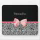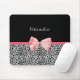 Ein trendy Schwarzweiss-Leoparddruck mousepad mit einem niedlichen rosa Bandbogen eingewickelt wie ein Geschenk. Personifizieren Sie, indem Sie Ihren Namen addieren. Vervollkommnen Sie Geschenk für ein jugendlich girly Mädchen!