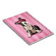 Modischer Boston-Terrierwelpe mit Herzen formte die Sonnenbrille, gemalt vom Künstler Maryline Cazenave.