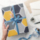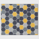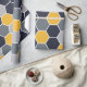 Ein elegantes Hexagonmuster in den blauen, grauen und gelben Tönen.
