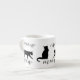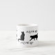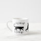 Trendy Espresso-Tasse Silhouetten der schwarzen Katze mit dem Wort "Meow" im schwarzen Skript.