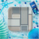 Modular Mitteljahrhundert Modernes geometrisches Muster in neutralem Blau Grau und Taupe Töne. Saubere quadratische Formen mit einer zeitgenössischen Mitte des Jahrhunderts modernen Vintagen Ästhetik. Einfaches, raffiniertes Design von Kierkegaard Design Studio.
