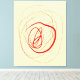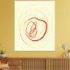 Eine Bio rote Linie mit verschiedenen Stärken bildet einen kreisförmigen und konzentrischen Pfad auf dieser cremefarbenen Leinwand.