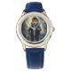 Kinderuhr aus Edelstahl mit blauem Lederarmband