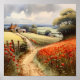 Schönes Aquarellbild von roten Mohn in einer Landschaft, perfekte Kunst, um jede Zuhause zu ergänzen.