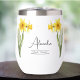 Fleur du mois de naissance Mars Vaisseau à vin Daffodil avec une illustration de fleurs de jonquilles. Sous les fleurs, le nom "Alexandra" est écrit dans une police de caractères stylée. Sous le nom, il indique "Mars - Daffodil", indiquant que le mois de naissance d'Alexandra est mars et que sa fleur de naissance est la jonquille. Il s'agit d'un cancre de vin personnalisé, probablement customisé comme un cadeau spécial pour quelqu'un né en mars.