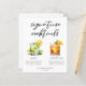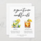 Cette feuille de menu cocktails signature été propose une simple typographie noire au-dessus de 2 de vos boissons préférées et de leurs ingrédients pour votre bar mariage côtier. Un dessin chic Mojito et Whiskey Sour ajoute une touche amusante à votre menu de bar. Complétez avec les noms du couple et la date de leur réception.