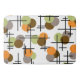 Ein atomares Retro-Zeitalter inspiriert mit braunen, orangefarbenen, grauen und chartreuse Molekülkreisen, zusammen mit modernen, fett formatierten Linien.