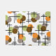 Ein atomares Retro-Zeitalter inspiriert mit braunen, orangefarbenen, grauen und chartreuse Molekülkreisen, zusammen mit modernen, fett formatierten Linien.
