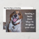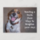Mein adoptiert Beagle, Molly auf ihrer eigenen Postkarte, Sprichwort: "Sende ein Lächeln deinen Weg, um deinen Tag zu hellen!"