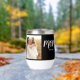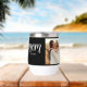Sleek white and black thermal wine tumbler with elegant white Mom Est. script and your personalized photo. A stylish, heartfelt keepsake that keeps drinks hot or cold for busy moms on the go.