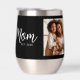 Being a mom is one of the most important jobs in the world. Show your favorite mom that you care with this custom photo, stainless steel insulated thermal wine tumbler. Simple white script calligraphy and sans serif typography, along with your personalized photo, overlay a black background. Personalize with the photo of your choice and the mom “established” year date when your first child was born. Add additional years for each child. And switch out “mom”, if desired, for however you call your mom or mum.