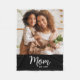 Mom Established Date White Script on Black Photo Fleecedecke