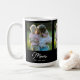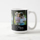 Mom Established Script Black 3 Photo Coffee Mug with elegant white script typography. Easy to customize. Add your photo and customize the "EST." date with the year your child was born. Add additional years for each child.