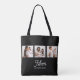 Black tote with Mom Established white script and 3 photos. Change the photos to your own kids and change the years to reflect when you became a mom.