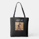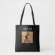 Black White Mom Established Script Black Photo Design. Mom Established Photo Gift Tote Bag with minimal elegant white script Mom typography. Add your photo custom and "Est" established year date when your first child was born. Add additional years for each child.