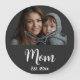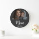 Celebrate Mom with this beautiful personalized wall clock featuring your favorite photo and custom “Mom Est. [Year]” text. Perfect for Mother’s Day, birthdays, Christmas or a thoughtful everyday gift, this elegant clock combines sentimental style with modern design. Add your own picture to create a one-of-a-kind keepsake she’ll cherish every day. This Mom Established Photo Gift is minimal Elegant Black with bold white Script Mom Typography - Add your photo custom "Est" year when your child was born. Add additional years for each child. Celebrate the year(s) you became a mom with this classic clock featuring bold white typography that proudly reads “Mom, Established in 20XX.” Perfect for moms of all ages, this minimalist design is both modern and timeless, making it a clock you’ll love to see every day.