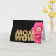 word mom and wow reflection on black mirror with bright pink gerbera daisy for Mother's Day