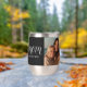 Celebrate motherhood in timeless style. This elegant black photo tumbler features the “Mom Established” script design — perfect for showcasing a favorite picture while keeping drinks warm or cold. A thoughtful keepsake for new moms or Mother’s Day.