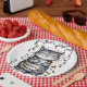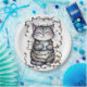 A funny and cheerful Christmas holiday design showcases a smiling cat wrapped in and surrounded by festive Christmas lights. She holds a cup of wine, and handwritten text reads: "Mom's jingle juice." This playful design is available on a variety of products, making it a perfect gift for wine lovers.