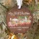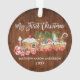 Script moderne de brosse Mon premier ornement de Noël comprend Watercolor Gingerbread Train avec bonbons, biscuits et pins. Rustic Country Wood Print.