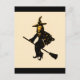 "Mona Lisa geht ins Halloween-Party"* Eine lustige Halloween-Karte, mit Mona Lisa als Hexe auf einem Besen, der für das Party bereit ist, *
