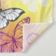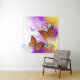 Orange, detailed monarch butterflies on light, purple, picture, painted background.