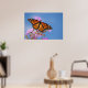 Ein wunderschöner Monarchschmetterling, der auf einer rosa Crape Myrtle-Blume gegen den blauen Himmel füttre - ein wunderschönes Plakat, das Ihnen einen Hauch von Natur auf die Wand schenkt!